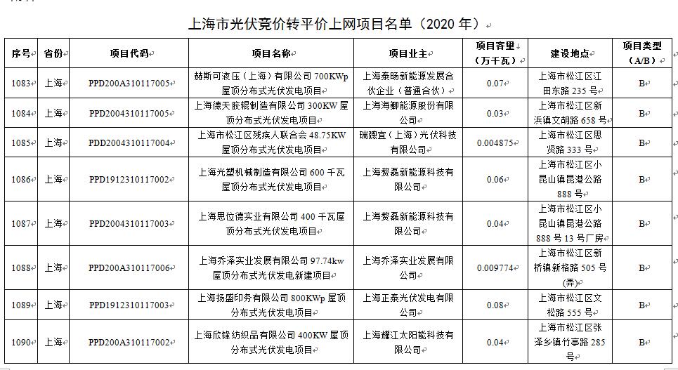 從上海市發(fā)改委獲悉:上海市發(fā)展和改革委員會(huì)近日印發(fā)關(guān)于轉(zhuǎn)發(fā)《關(guān)于公布光伏競價(jià)轉(zhuǎn)平價(jià)上網(wǎng)項(xiàng)目的通知》的通知,公布了上海市2020年光伏競價(jià)轉(zhuǎn)平價(jià)上網(wǎng)名單。