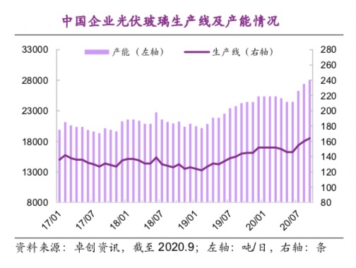 另一方面,光伏組件產(chǎn)品升級迭代較快,對玻璃的要求不斷提高,也使得一部分玻璃產(chǎn)線由于無法滿足需求而被閑置。同時(shí),效率更高的雙面組件應(yīng)用比例快速提高,2020年雙面組件的應(yīng)用比例預(yù)計(jì)超過30%。從單面切換至雙面,每瓦組件的玻璃需求增加25%,使得光伏玻璃需求進(jìn)一步增長。
