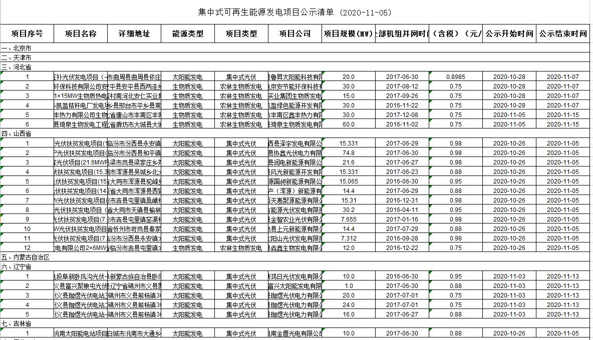 今日(11月5日),國家電網(wǎng)發(fā)布新一批集中式可再生能源發(fā)電項(xiàng)目公示清單,其中,光伏項(xiàng)目74個(gè)。公示時(shí)間為11月5日至11月13日。詳情如下: