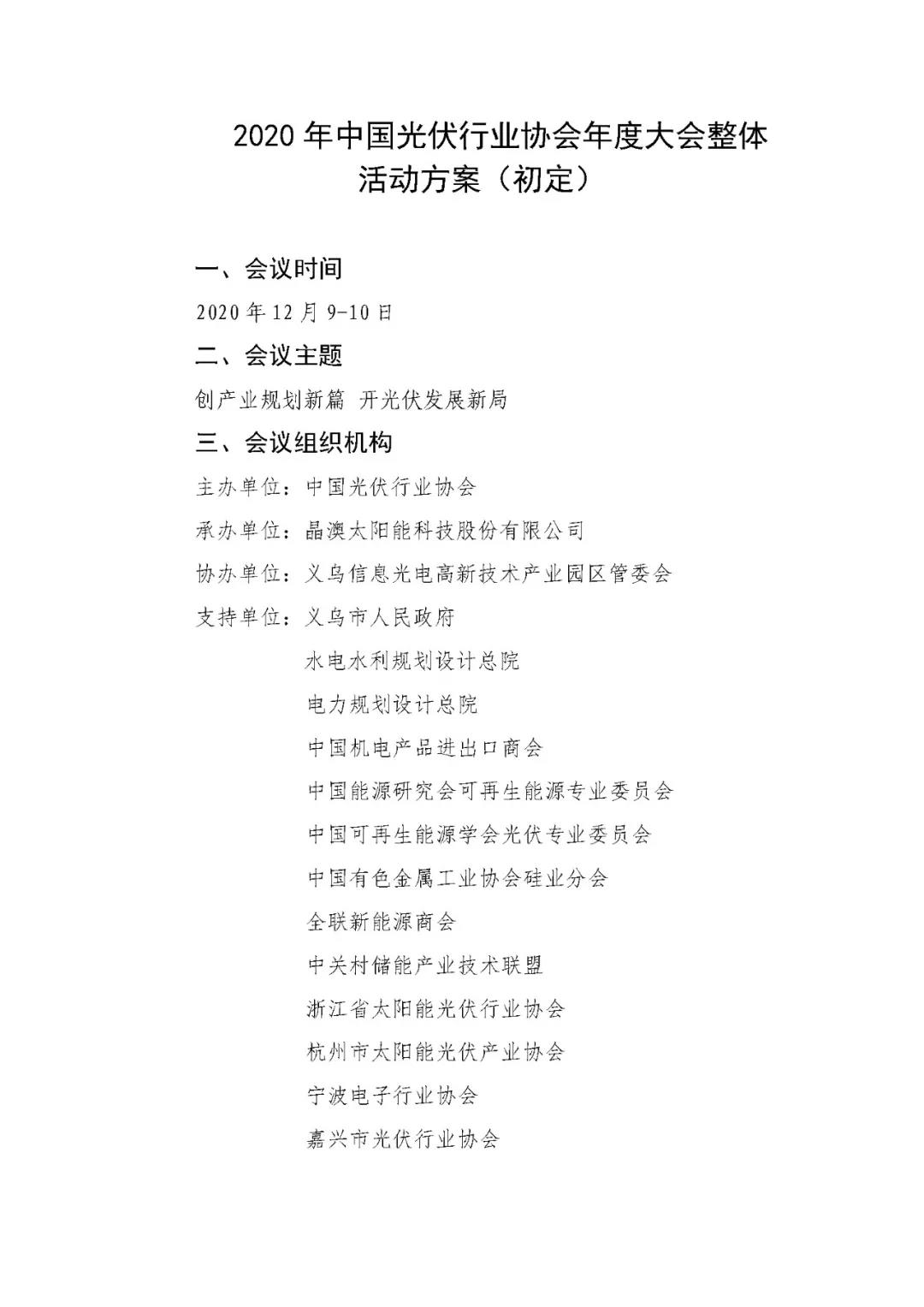 為更好探討新階段、新形勢(shì)下我國(guó)未來光伏行業(yè)發(fā)展方向與路徑,促進(jìn)行業(yè)交流與溝通,中國(guó)光伏行業(yè)協(xié)會(huì)于12月9-10日召開“2020中國(guó)光伏行業(yè)年度大會(huì)”,邀請(qǐng)行業(yè)主管部門、行業(yè)組織、行業(yè)專家、光伏企業(yè)領(lǐng)袖等代表一起就行業(yè)發(fā)展熱點(diǎn)問題進(jìn)行探討分析。