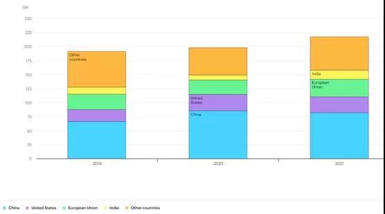 歐盟的裝機(jī)容量預(yù)計(jì)將在2021年大幅增加。這主要是法國(guó)和德國(guó)之前拍賣(mài)的大規(guī)模的太陽(yáng)能光伏和風(fēng)能項(xiàng)目上線的結(jié)果。成員國(guó)為實(shí)現(xiàn)歐盟2030年可再生能源目標(biāo)而制定的政策,以及歐盟回收基金提供的低成本融資和贈(zèng)款,為可再生能源增長(zhǎng)提供了支持。在中東、北非地區(qū)和拉丁美洲,可再生能源的增長(zhǎng)在2021年復(fù)蘇,這主要得益于之前通過(guò)競(jìng)爭(zhēng)性拍賣(mài)授予的項(xiàng)目的投產(chǎn)。