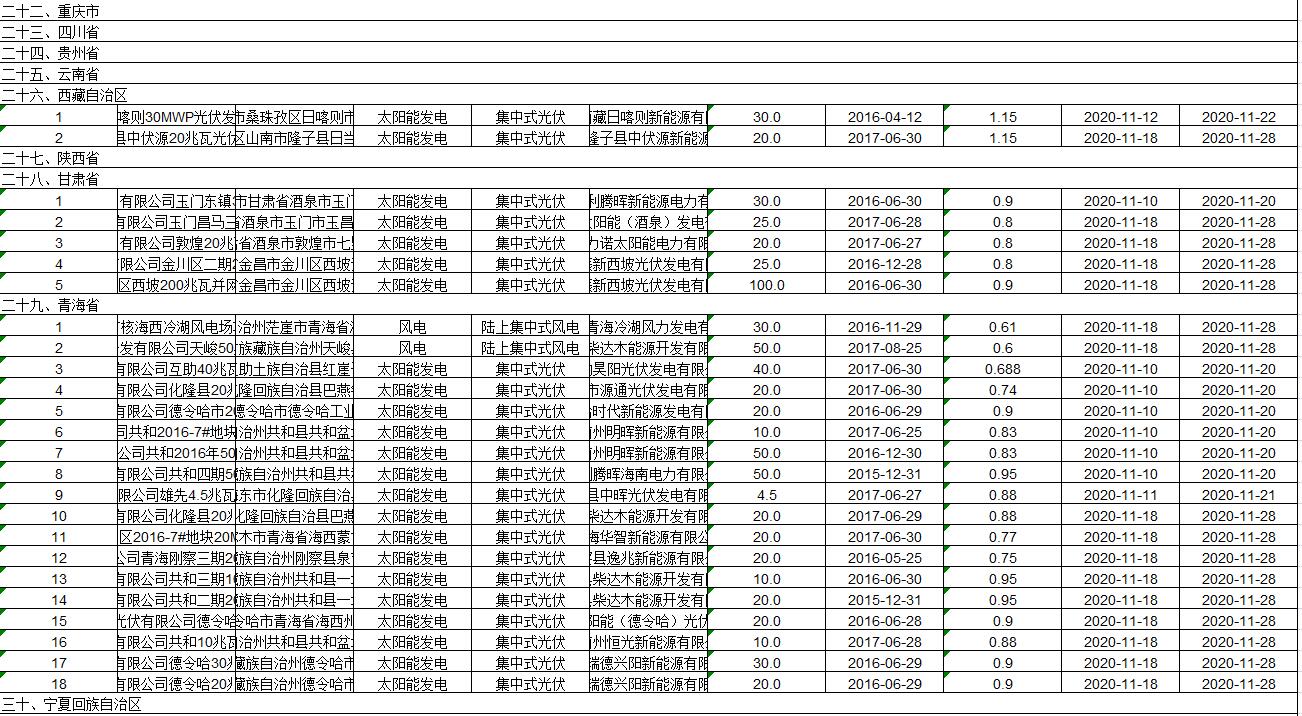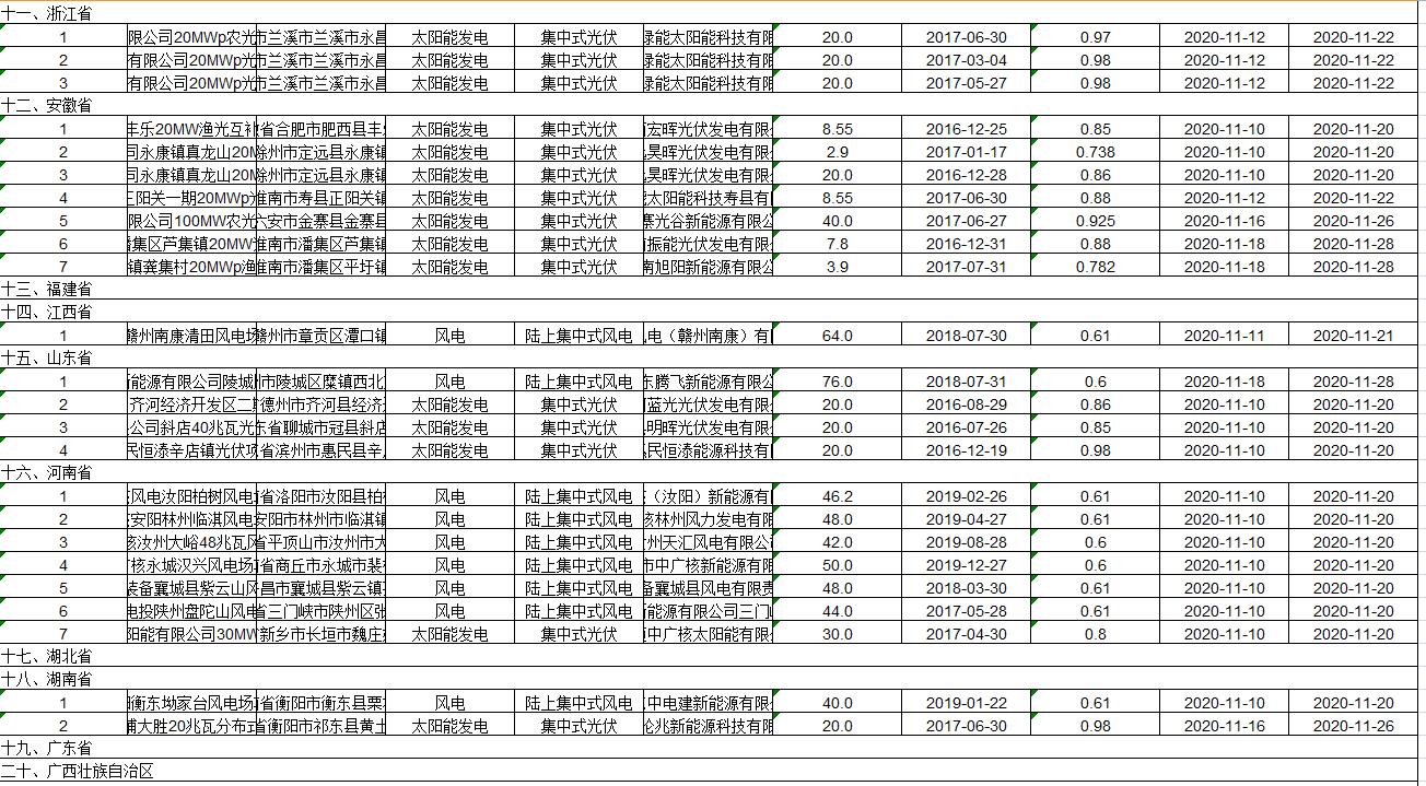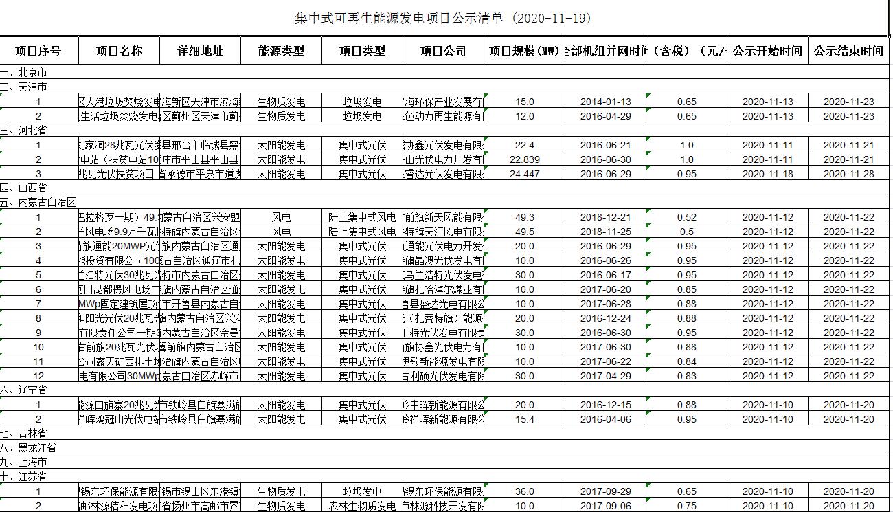 國(guó)家電網(wǎng)最新消息:今日(11月19日),國(guó)網(wǎng)發(fā)布新一批集中式可再生能源發(fā)電項(xiàng)目公示清單,15個(gè)省市自治區(qū)共計(jì)71個(gè),其中,集中式光伏項(xiàng)目54個(gè)。公示時(shí)間為11月18日至11月28日。具體清單如下: