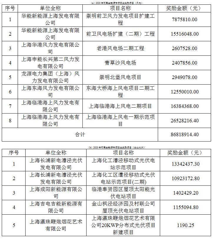 今日上海市發(fā)展和改革委員會發(fā)布《2020年度可再生能源專項資金撥付計劃(草案)公示》,詳情如下: