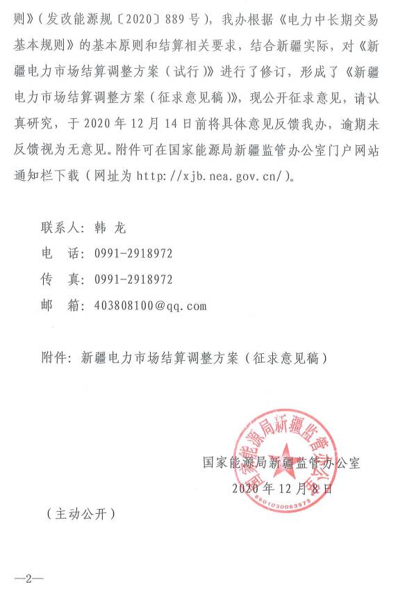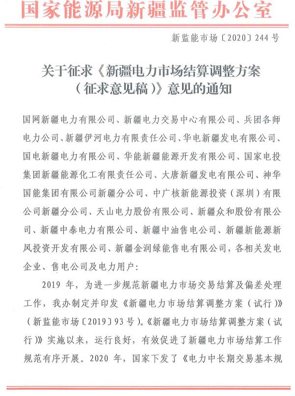 《新疆電力市場結算調整方案(征求意見稿)》公開征求意見