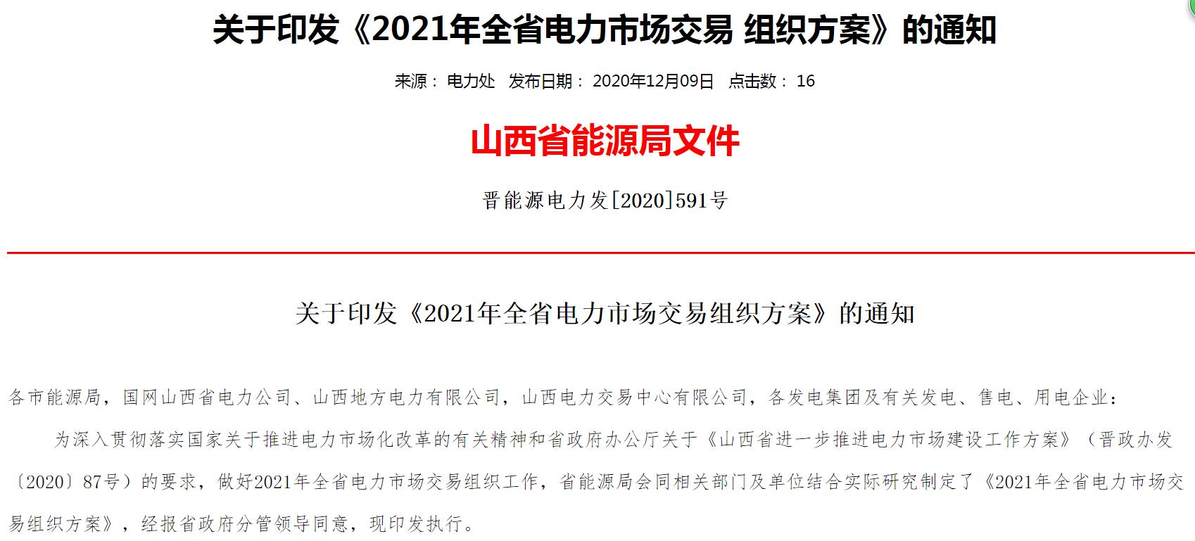 為落實國家電力市場化改革的有關精神和省政府辦公廳關于《山西省進一步推進電力市場建設工作方案》(晉政辦發(fā)〔2020〕87號)要求,有序推進我省電力市場健康發(fā)展,特制定2021年全省電力市場交易組織方案。