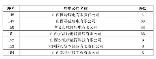 其中,2019年7月-2020年6月期間,開(kāi)展業(yè)務(wù)的售電公司有154家,取得相應(yīng)評(píng)級(jí)結(jié)果;其他77家售電公司未在評(píng)價(jià)期內(nèi)開(kāi)展業(yè)務(wù),不參與本次評(píng)級(jí)。