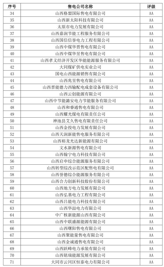 2020年售電公司信用評(píng)價(jià)結(jié)果如下: