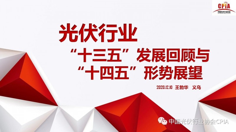 12月10舉辦的“2020年中國光伏行業(yè)協(xié)會年度大會”上,中國光伏行協(xié)會副理事長兼秘書長王勃華作光伏行業(yè)“十三五”發(fā)展回顧與“十四五”形勢展望的報告。