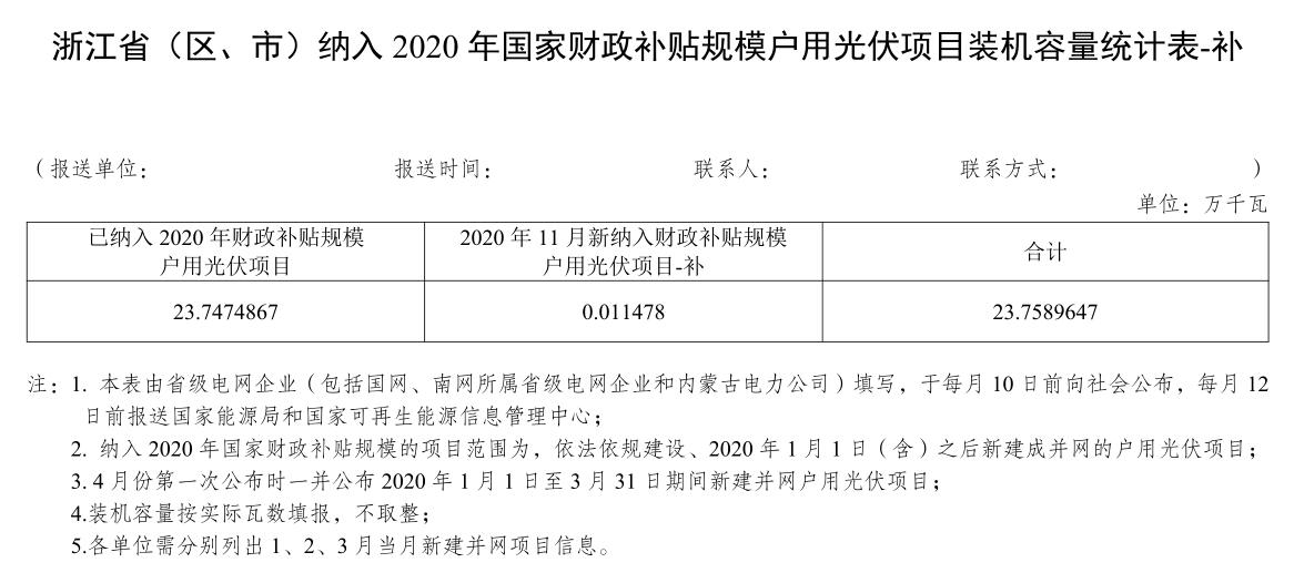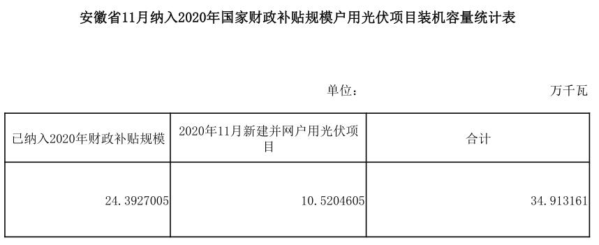日前,根據(jù)《國家能源局綜合司關(guān)于2019年戶用光伏項目信息公布和報送有關(guān)事項的通知》工作要求,國網(wǎng)北京、安徽、浙江、山東電力有限公司對2020年11月份新增的戶用光伏項目進行了梳理,以下是公布的相關(guān)信息(納入2020年國家財政補貼規(guī)模戶用光伏項目名單省略)。