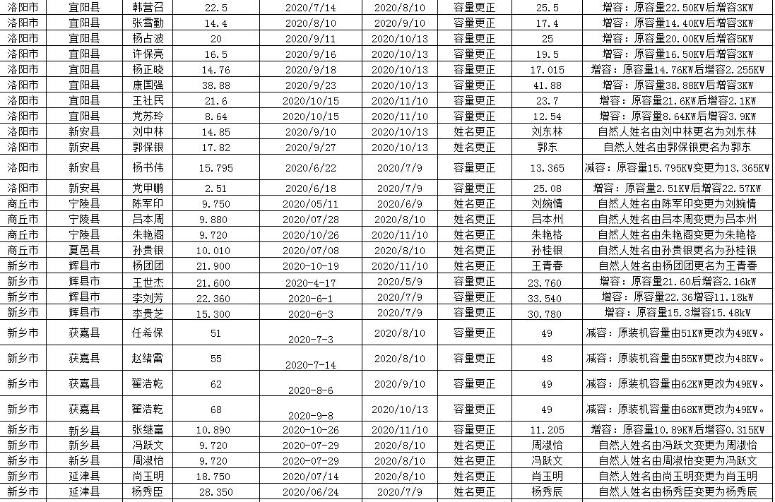 按照國家能源局相關(guān)要求,現(xiàn)對河南省2020年11月已建成并網(wǎng)但未納入國家補貼范圍的戶用光伏項目信息及2020年1-11月份并網(wǎng)戶用光伏變更信息予以公示。公示期為2020年12月10日-12月12日,如有異議,請在公示期結(jié)束前向國網(wǎng)河南省電力公司營銷部提出。