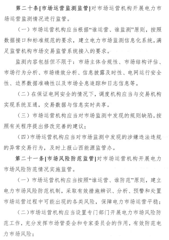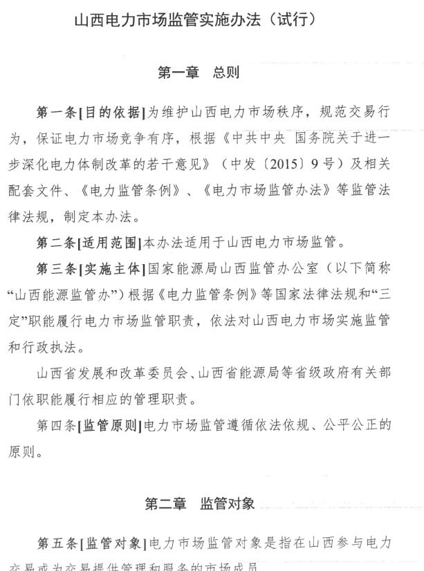 《山西電力市場(chǎng)監(jiān)管實(shí)施辦法(試行)》全文如下: