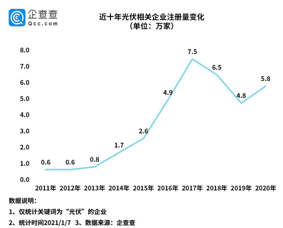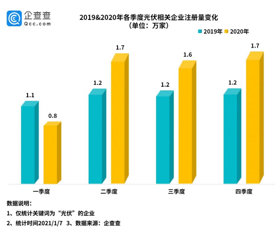 原標(biāo)題:光伏板塊火熱!2020年我國光伏相關(guān)企業(yè)注冊(cè)量同比增長22%