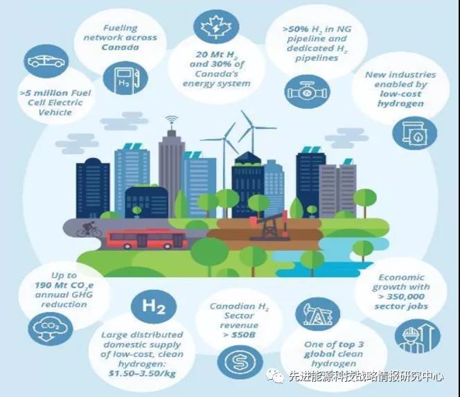 加拿大政府計(jì)劃通過發(fā)展氫能,到2050年實(shí)現(xiàn)如下目標(biāo):(1)高達(dá)30%的能源以氫的形式輸送:(2)成為全球前三大清潔氫生產(chǎn)國,國內(nèi)供應(yīng)量超過2000萬噸/年;(3)建立低碳?xì)涔⿷?yīng)基地,交貨價(jià)格達(dá)到1.50-3.50加元/千克;(4)超過500萬輛燃料電池汽車投運(yùn);(5)建立全國加氫網(wǎng)絡(luò);(6)在當(dāng)前通過天然氣供應(yīng)的能源中,實(shí)現(xiàn)50%以上由氫氣摻混現(xiàn)有天然氣管道和新建專用輸氫管道來提供;(7)通過低成本氫氣供應(yīng)網(wǎng)絡(luò)帶動(dòng)新興產(chǎn)業(yè)發(fā)展;(8)造就約35萬個(gè)氫能行業(yè)崗位;(9)國內(nèi)市場(chǎng)氫能直接部門收入超過500億美元;(10)形成有競(jìng)爭(zhēng)力的氫出口市場(chǎng);(11)相關(guān)CO2減排量最高達(dá)到1.9億噸/年。