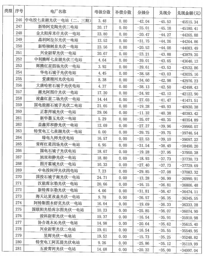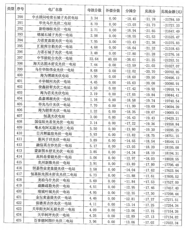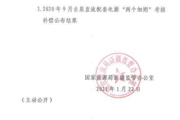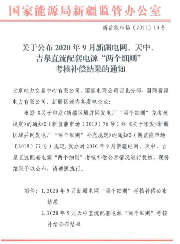 2020年9月新疆電網(wǎng)“兩個細(xì)則”考核和補償結(jié)果(光伏)