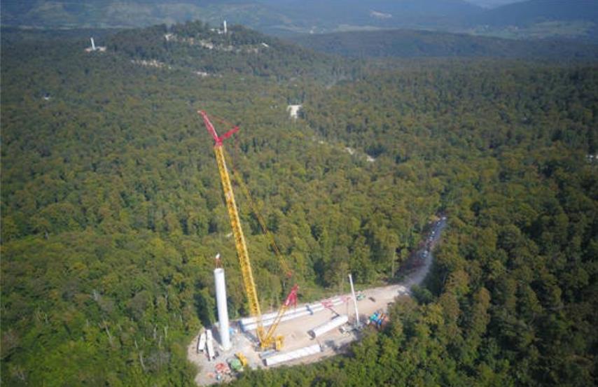 2020年9月16日航拍的克羅地亞塞尼風電項目風機塔筒吊裝施工現(xiàn)場。北方國際合作股份有限公司2017年11月收購克羅地亞能源項目公司塞尼風電項目76%的股權(quán),并獲得項目建設(shè)權(quán)和長達25年的運營權(quán)。塞尼風電項目總裝機156兆瓦,建成后預(yù)計年均發(fā)電3400小時,年發(fā)電量5.3億度,預(yù)計2021年6月全部建成并網(wǎng)發(fā)電。