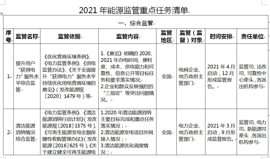 國家能源局關于印發(fā)《2021年能源監(jiān)管重點任務清單》的通知