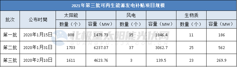 關(guān)于公布2021年第三批可再生能源發(fā)電補(bǔ)貼項(xiàng)目清單的公告