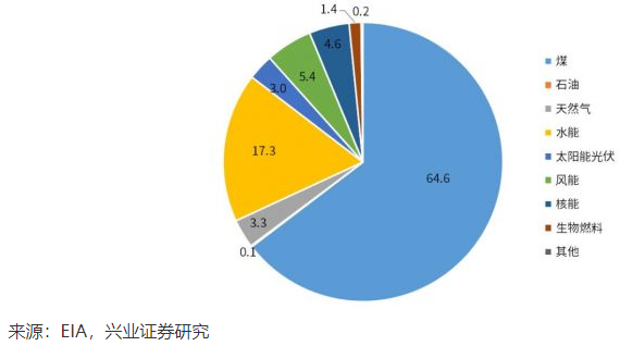 2019 年我國發(fā)電能源耗用結(jié)構(gòu)