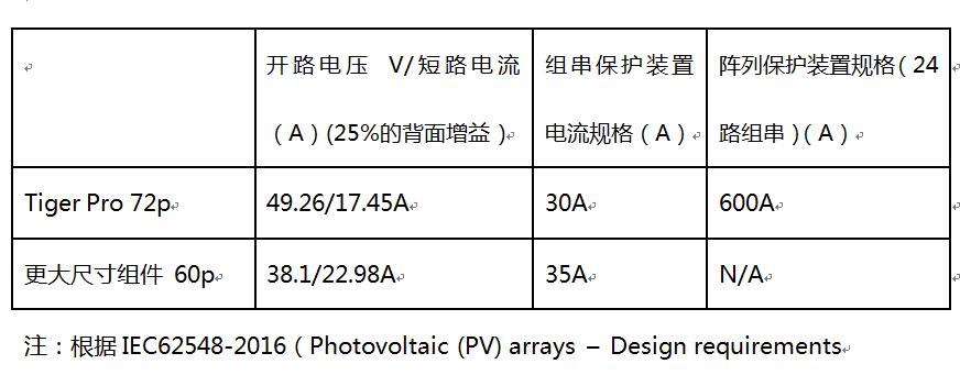 由上表可知,對(duì)于光伏組件,高電流意味著項(xiàng)目需要提供更大規(guī)格的保護(hù)裝置來保障組件的安全性。在這一方面,晶科能源Tiger Pro系列組件能在提供更優(yōu)安全保障的同時(shí),減少額外的保護(hù)裝置成本。