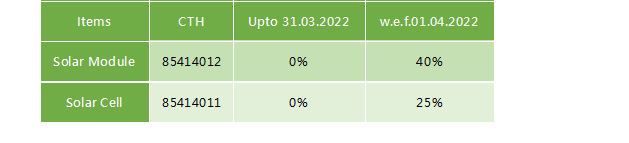 下面是印度新能源部門對太陽能電池和組件增收基本關稅的建議(無豁免招標項目),建議已經(jīng)被財政部通過,有關這方面的海關通知應在適當時間發(fā)出。
