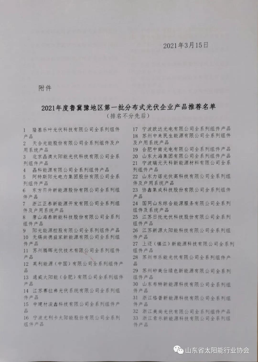 現(xiàn)將2021年度魯冀豫地區(qū)第一批分布式光伏企業(yè)產(chǎn)品推薦名單公告如下: