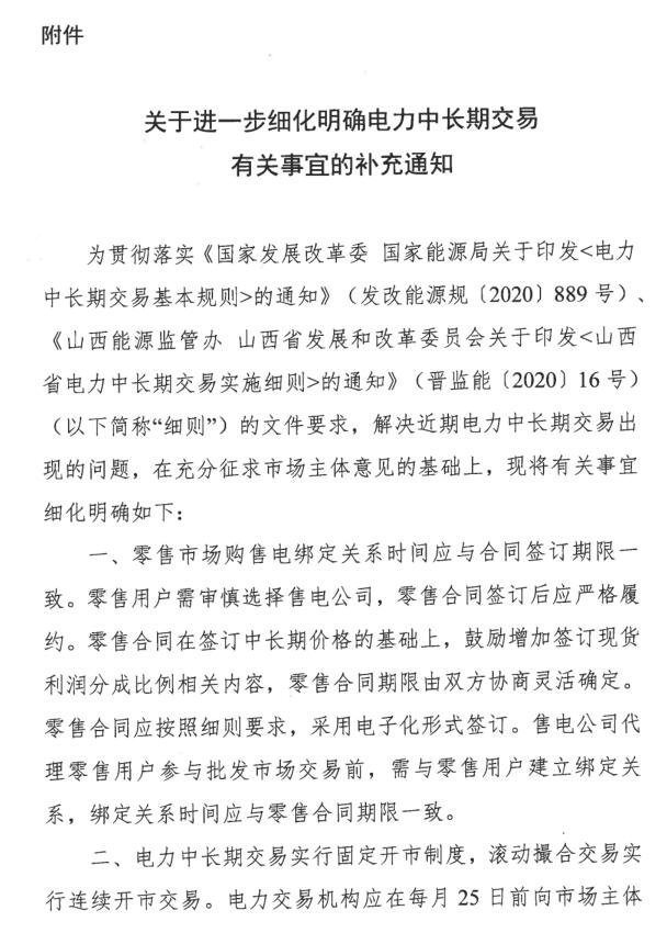 山西印發(fā)《關于進一步細化明確電力中長期交易有關事宜的補充通知》