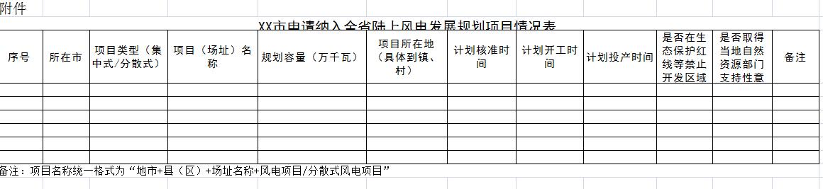 附件:XX市申請(qǐng)納入全省陸上風(fēng)電發(fā)展規(guī)劃項(xiàng)目情況表