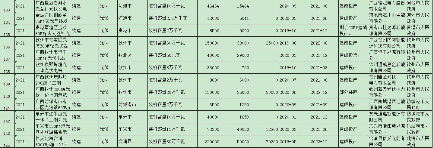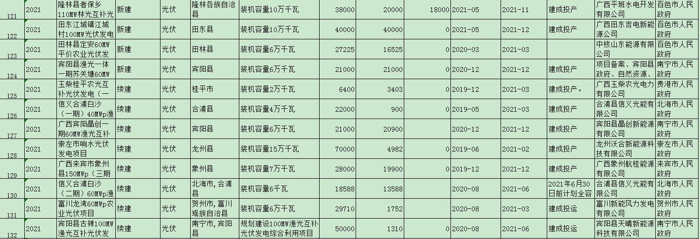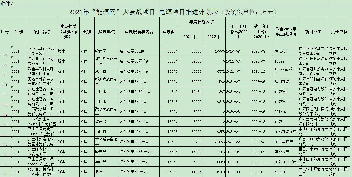 《廣西“能源網(wǎng)”建設2021年工作推進方案》光伏項目如下: