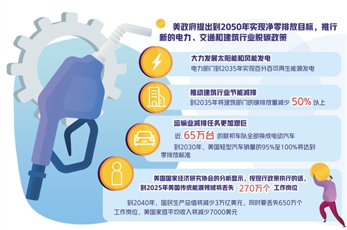 美政府提出到2050年實現(xiàn)凈零排放目標(biāo),推行新的電力、交通和建筑行業(yè)脫碳政策。比如大力發(fā)展太陽能和風(fēng)能發(fā)電,電力部門到2035年實現(xiàn)百分百可再生能源發(fā)電;到2035年將建筑部門的碳排放量減少50%以上,而屬于最大排放源的運輸業(yè)減排任務(wù)更加艱巨。白宮要求近65萬臺的聯(lián)邦車隊全部換成電動汽車;到2030年,美國輕型汽車銷量的95%至100%將達(dá)到零排放標(biāo)準(zhǔn)。
