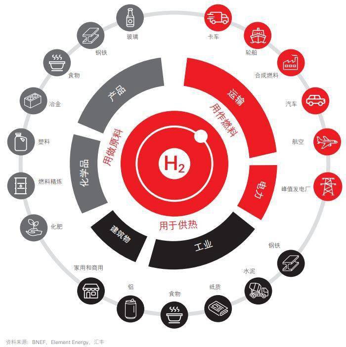 氫能的多功能性及其脫碳潛力可廣泛應(yīng)用于運(yùn)輸、建筑和重工業(yè)領(lǐng)域。像天然氣一樣,它可以存儲(chǔ)和運(yùn)輸,并能很容易地轉(zhuǎn)換成電能、熱量或其他產(chǎn)品。