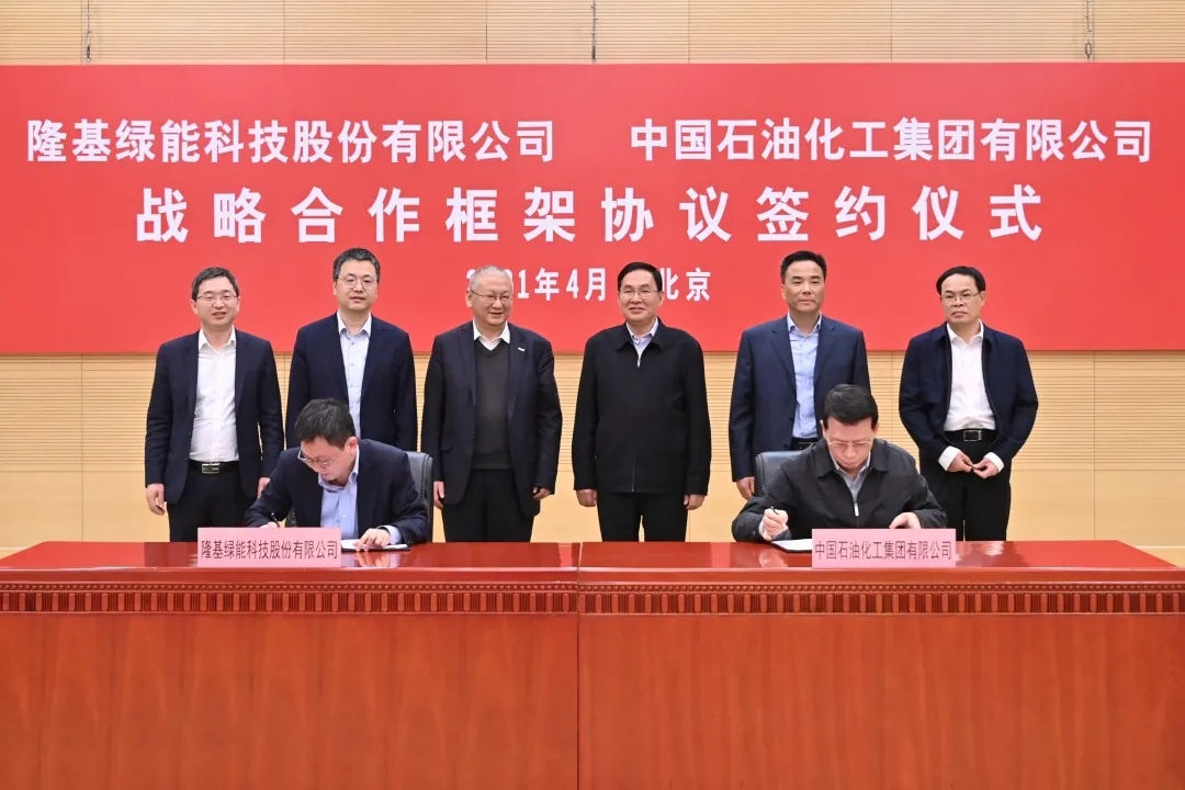 4月13日,隆基綠能科技股份有限公司(以下簡稱隆基股份)與中國石油化工集團有限公司(以下簡稱中國石化)在京簽署戰(zhàn)略合作協(xié)議。未來雙方將以國家“2030年前碳達峰、2060年前碳中和”目標為指引,發(fā)揮各自優(yōu)勢,通過全方位協(xié)同,在分布式光伏、光伏+綠氫、化工材料等多領(lǐng)域形成深度合作,共同開拓清潔能源應(yīng)用市場。隆基