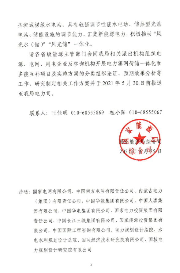通知要求,各省級能源主管部門應積極開展電力源網(wǎng)荷儲一體化和多能互補項目及實施方案的分類組織論證、預期效果分析等工作,研究制定相關工作方案并于2021年5月30日前報送至能源局電力司。