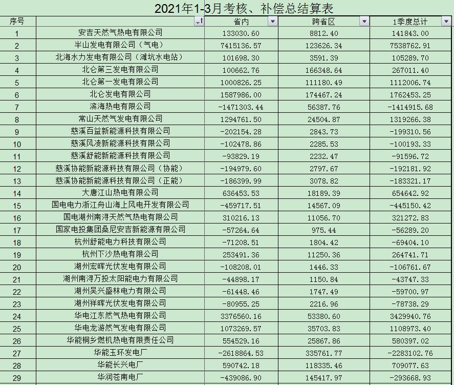 浙江能源監(jiān)管辦今日發(fā)布2021年1-3月份“兩個細(xì)則”試運行結(jié)果公示。