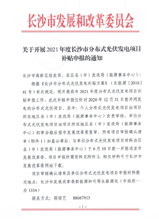近日,長沙市發(fā)改委印發(fā)《關(guān)于開展2021年度長沙市分布式光伏發(fā)電項(xiàng)目補(bǔ)貼申報的通知》,啟動長沙市2021年度分布式光伏發(fā)電項(xiàng)目補(bǔ)貼申報工作。通知明確,此次補(bǔ)貼申報僅針對2020年12月31日前并網(wǎng)發(fā)電的分布式光伏項(xiàng)目。