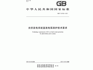 國(guó)家市場(chǎng)監(jiān)督管理總局、中國(guó)國(guó)家標(biāo)準(zhǔn)化管理委員會(huì)日前發(fā)布《光伏發(fā)電系統(tǒng)直流電弧保護(hù)技術(shù)要求》(英文標(biāo)準(zhǔn)名稱(chēng):Technology requirements of DC arc-fault circuit protection for photovoltaic power system),標(biāo)準(zhǔn)號(hào):GB/T 39750-2021,該標(biāo)準(zhǔn)將于2021年10月1日