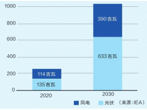 據(jù)此,報告認(rèn)為,未來十年里需迅速擴大太陽能和風(fēng)能的規(guī)模。到2030年,光伏發(fā)電年新增裝機630吉瓦,風(fēng)電年新增裝機390吉瓦,是2020年創(chuàng)下的記錄的4倍。對于光伏而言,相當(dāng)于每天安裝一個目前世界上最大的太陽能公園。