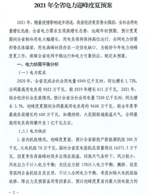 據(jù)山東省能源局消息:為做好今年電力迎峰度夏工作,保障全省電網(wǎng)平穩(wěn)運(yùn)行和電力可靠供應(yīng),山東省能源局制定印發(fā)《2021年全省電力迎峰度夏預(yù)案》。根據(jù)《預(yù)案》,山東省夏季用電高峰存在供電缺口,省外來(lái)電穩(wěn)定輸入存在不確定性,電網(wǎng)穩(wěn)定運(yùn)行壓力較大,各地要提前籌劃,明確責(zé)任,強(qiáng)化落實(shí),確保電力穩(wěn)定可靠供應(yīng)。