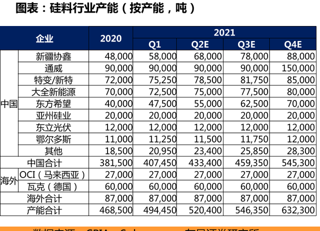 據(jù)東吳證券5月25日研報梳理,通威股份、保利協(xié)鑫等硅料行業(yè)公司及產(chǎn)能對應(yīng)如下:
