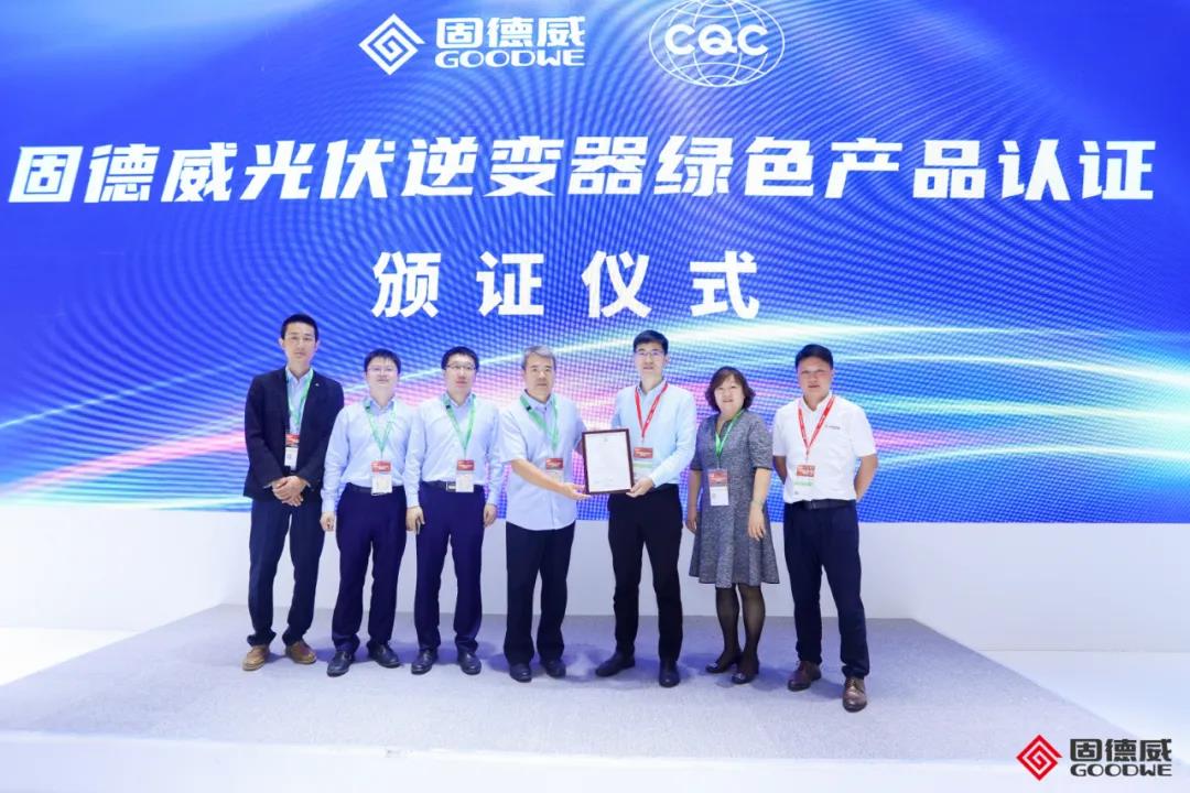 展會(huì)現(xiàn)場CQC(中國質(zhì)量認(rèn)證中心)為固德威大功率機(jī)型GW136K-HTH頒發(fā)國內(nèi)外首張綠色產(chǎn)品認(rèn)證證書,這也意味著固德威光伏逆變器不僅可以生產(chǎn)轉(zhuǎn)換綠色電力,而且逆變器自身的生產(chǎn)也是綠色低碳的,在國家雙碳目標(biāo)下固德威積極履行企業(yè)責(zé)任,推進(jìn)綠色低碳發(fā)展。