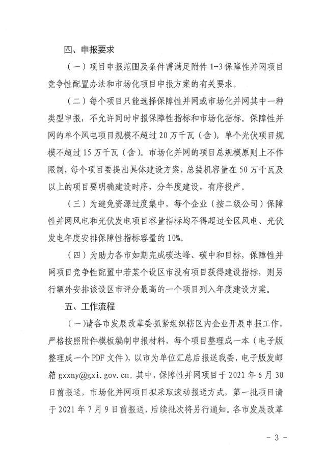 6月18日,廣西發(fā)改委發(fā)布《關(guān)于申報(bào)2021年陸上風(fēng)電、光伏發(fā)電項(xiàng)目的通知》,通知提出:2021年,廣西擬新增光伏保障性并網(wǎng)項(xiàng)目建設(shè)指標(biāo)400萬(wàn)千瓦左右,風(fēng)電保障性并網(wǎng)項(xiàng)目建設(shè)指標(biāo)500萬(wàn)千瓦左右。