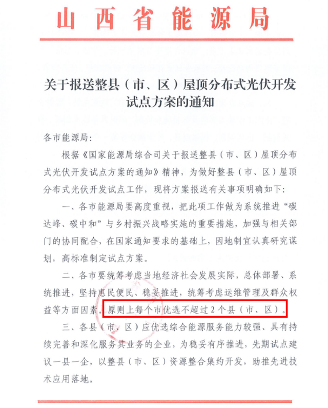 山西省關(guān)于報送整縣(市、區(qū))屋頂分布式光伏開發(fā)試點方案的通知