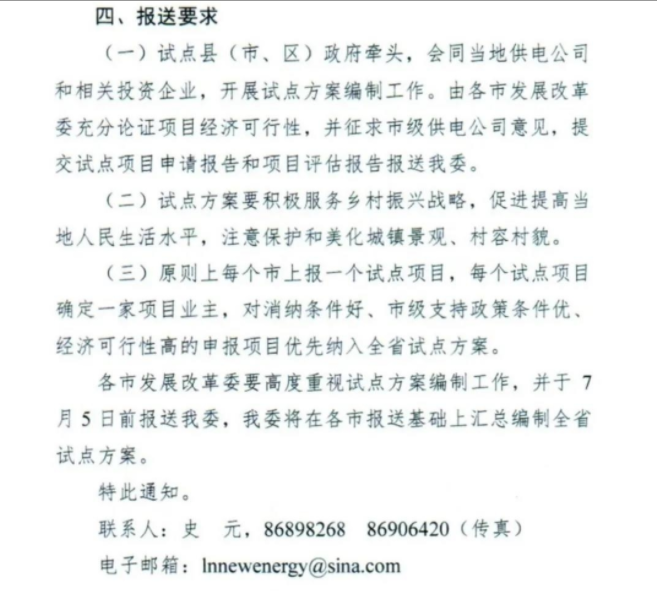 日前,遼寧省發(fā)改委印發(fā)通知,正式啟動(dòng)分布式光伏整縣推進(jìn)試點(diǎn)。通知明確,申報(bào)試點(diǎn)要具有豐富的屋頂資源,有較高積極性和較好電力消納能力,鼓勵(lì)項(xiàng)目整體打包備案,通過(guò)財(cái)政補(bǔ)貼、整合鄉(xiāng)村振興各類項(xiàng)目資金等方式給予支持。原則上每個(gè)市上報(bào)一個(gè)試點(diǎn)項(xiàng)目,每個(gè)試點(diǎn)項(xiàng)目確定一家項(xiàng)目業(yè)主,對(duì)消納條件好、市級(jí)支持政策條件優(yōu)、經(jīng)濟(jì)可行性高的申報(bào)項(xiàng)目?jī)?yōu)先納入全省試點(diǎn)方案,并于7日5日前報(bào)送發(fā)改委。