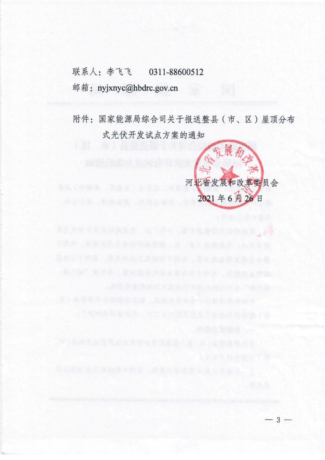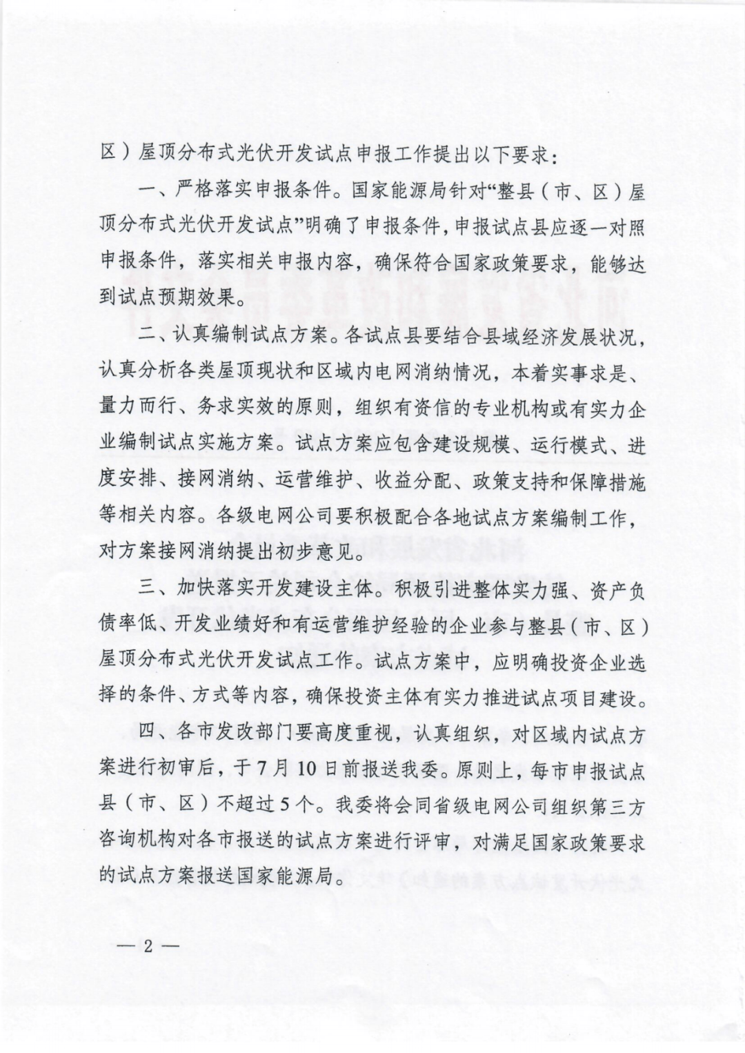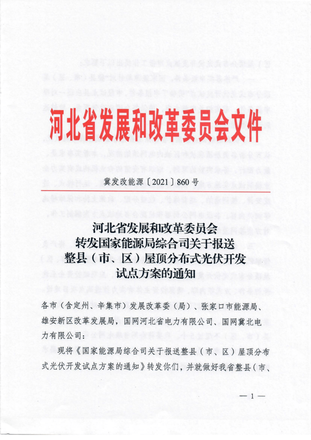 近日,河北發(fā)改委下發(fā)《組織申報(bào)整縣(市區(qū))屋頂分布式光伏開(kāi)發(fā)試點(diǎn)方案的通知》,要求積極引進(jìn)整體實(shí)力強(qiáng)、資產(chǎn)負(fù)債率低、開(kāi)發(fā)業(yè)績(jī)好和有運(yùn)營(yíng)維護(hù)經(jīng)驗(yàn)的企業(yè)參與整縣(市、區(qū))屋頂分布式光伏開(kāi)發(fā)試點(diǎn)工作。原則上,每市申報(bào)試點(diǎn)縣(市、區(qū))不超過(guò)5個(gè)。