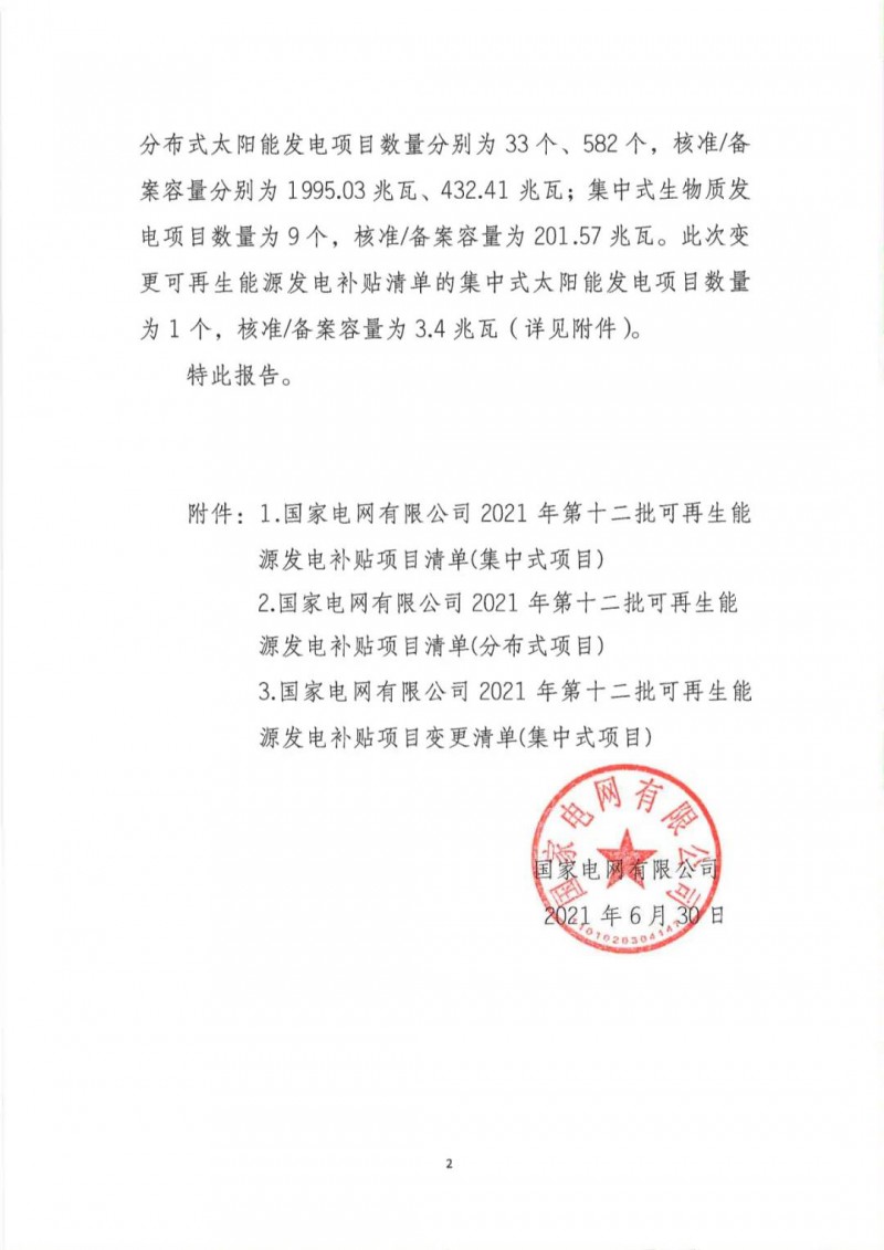 從國網(wǎng)新能源云獲悉:國家電網(wǎng)有限公司今日發(fā)布《關(guān)于公布2021年第十二批可再生能源發(fā)電補(bǔ)貼項(xiàng)目清單的公告》(以下簡稱“《公告》”)。