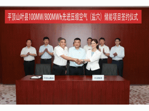 平頂山的葉縣,有著“中國巖鹽之都”的美譽(yù),現(xiàn)在,這里即將成為一座極具發(fā)展?jié)摿Φ拇笠?guī)模長時低碳儲能技術(shù)的應(yīng)用示范高地。6月30日,平頂山晟光儲能有限公司和中國機(jī)械設(shè)備工程股份有限公司(簡稱中設(shè)集團(tuán))在北京正式簽約,將在葉縣建設(shè)國際首套利用鹽穴儲氣的百兆瓦級先進(jìn)壓縮空氣儲能電站。