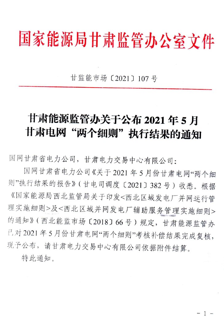 2021年5月份甘肅電網(wǎng)“兩個(gè)細(xì)則”執(zhí)行結(jié)果公布