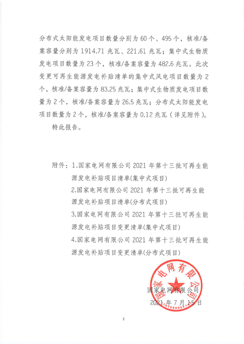 據(jù)國(guó)網(wǎng)新能源云消息:19日,國(guó)網(wǎng)新能源云發(fā)布《關(guān)于公布2021年第十三批可再生能源發(fā)電補(bǔ)貼項(xiàng)目清單的公告》。