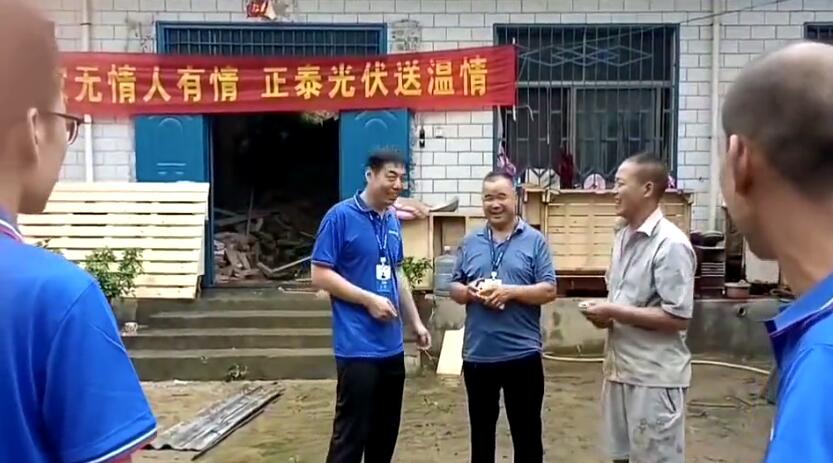 當晚得知消息后,公司運維人員劉偉第一時間趕到現(xiàn)場,冒著再次倒塌的危險對現(xiàn)場做排險處理并當場捐出500元給郭運周。代理商禹州博潤總經(jīng)理趙建偉了解情況后也隨即到他家,送上了方便面、食用油等生活急需物資,并捐助了5000元幫助郭運周家暫渡難關(guān)。