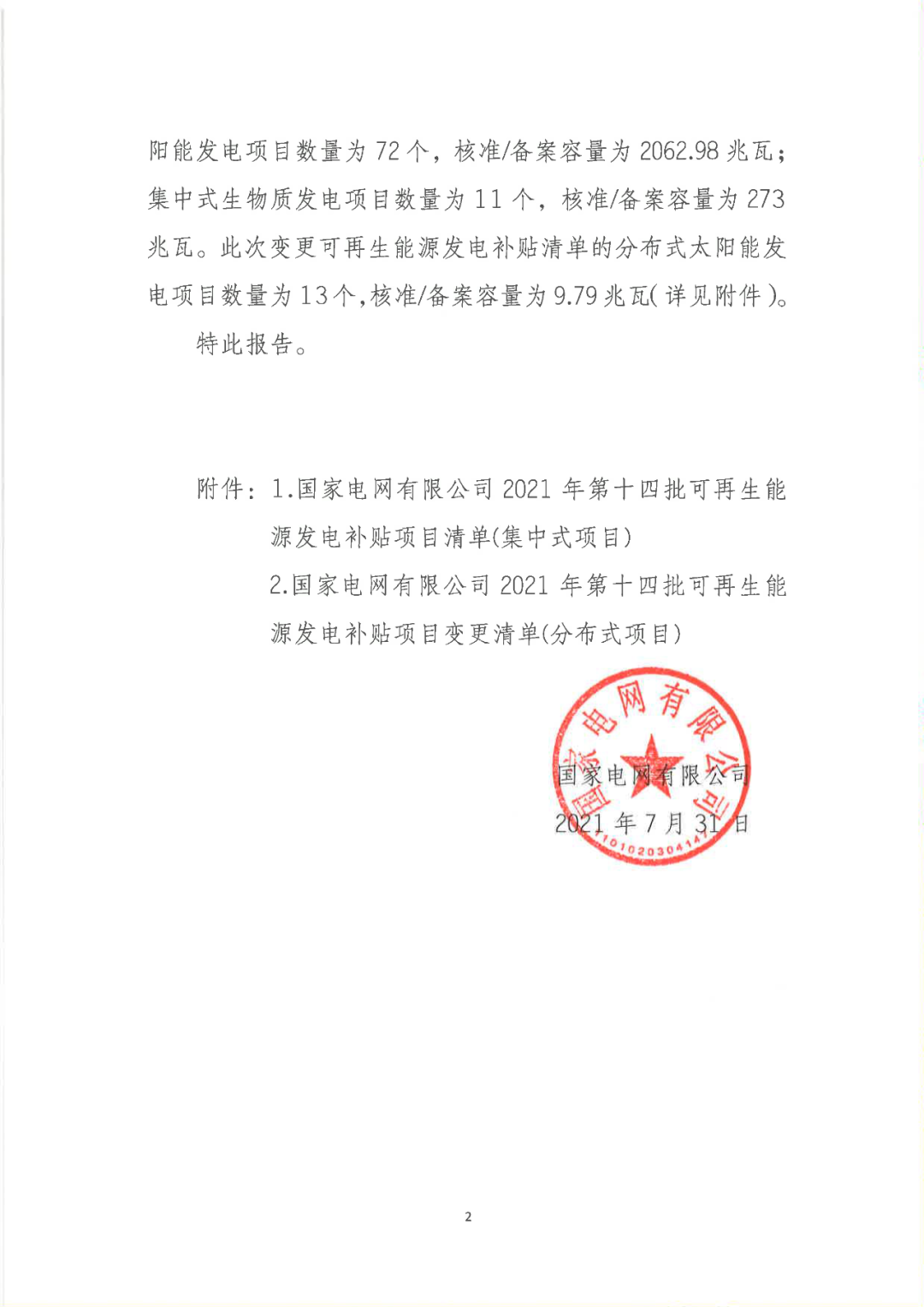 7月31日,國家電網(wǎng)公布2021年第十四批可再生能源發(fā)電補貼項目清單。