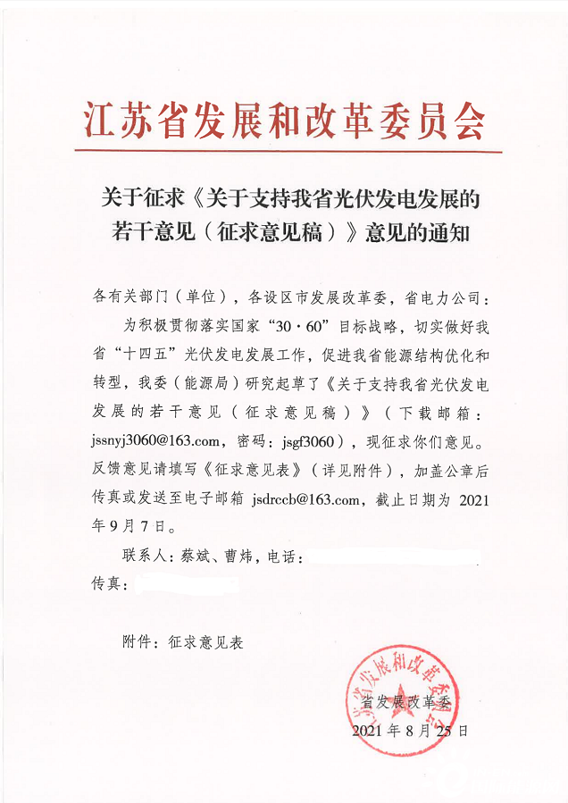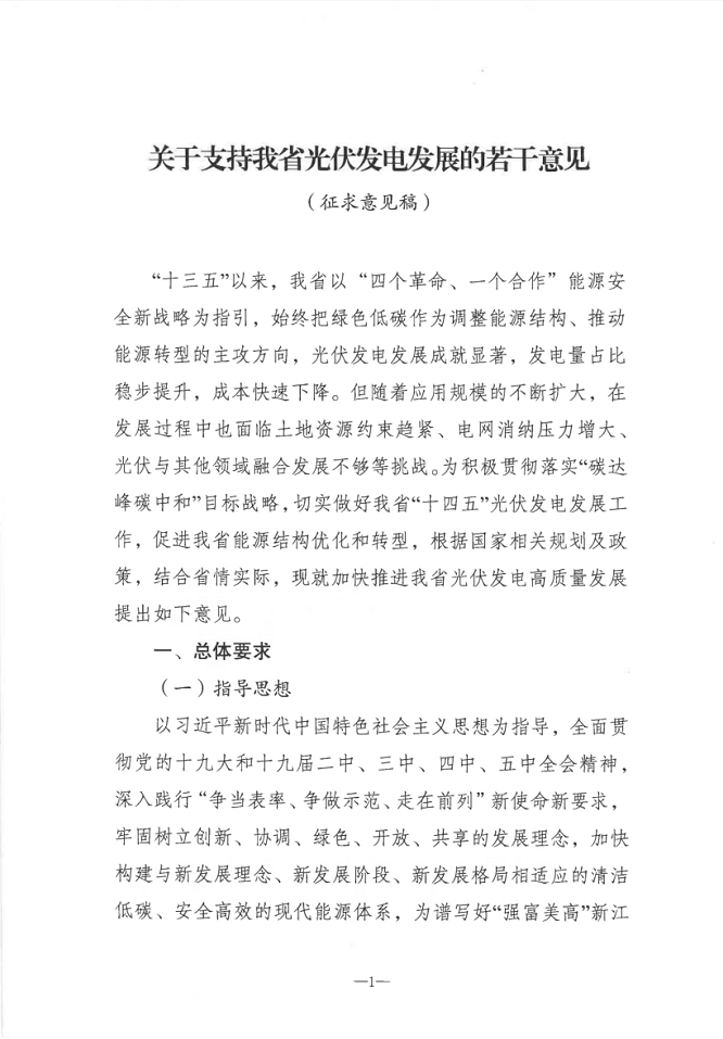 8月25日,江蘇省發(fā)改委印發(fā)《關(guān)于支持我省光伏發(fā)電發(fā)展的若干意見(征求意見稿)》意見的通知,明確提出,著眼于全省光伏發(fā)電“十四五”發(fā)展目標,堅持集中式開發(fā)與分布式發(fā)展并舉,開展整縣(市區(qū))屋頂分布式光伏開發(fā)試點推進工作,分類分批有序推進光伏項目建設(shè),確保完成既定目標任務。全文如下: